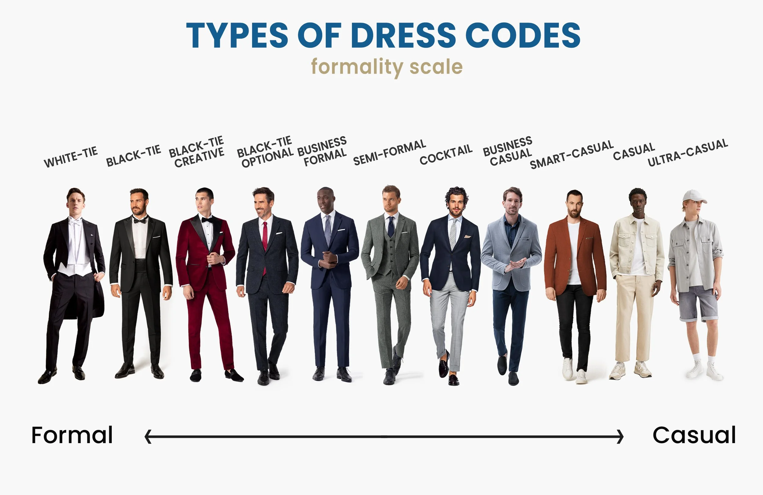 When reading about what to wear you will see comparisons to many other styles of clothing. You shouldn’t get bogged down into finding out what the difference between smart casual and business casual is. Simply try to aim at the center of the picture and you will do alright.